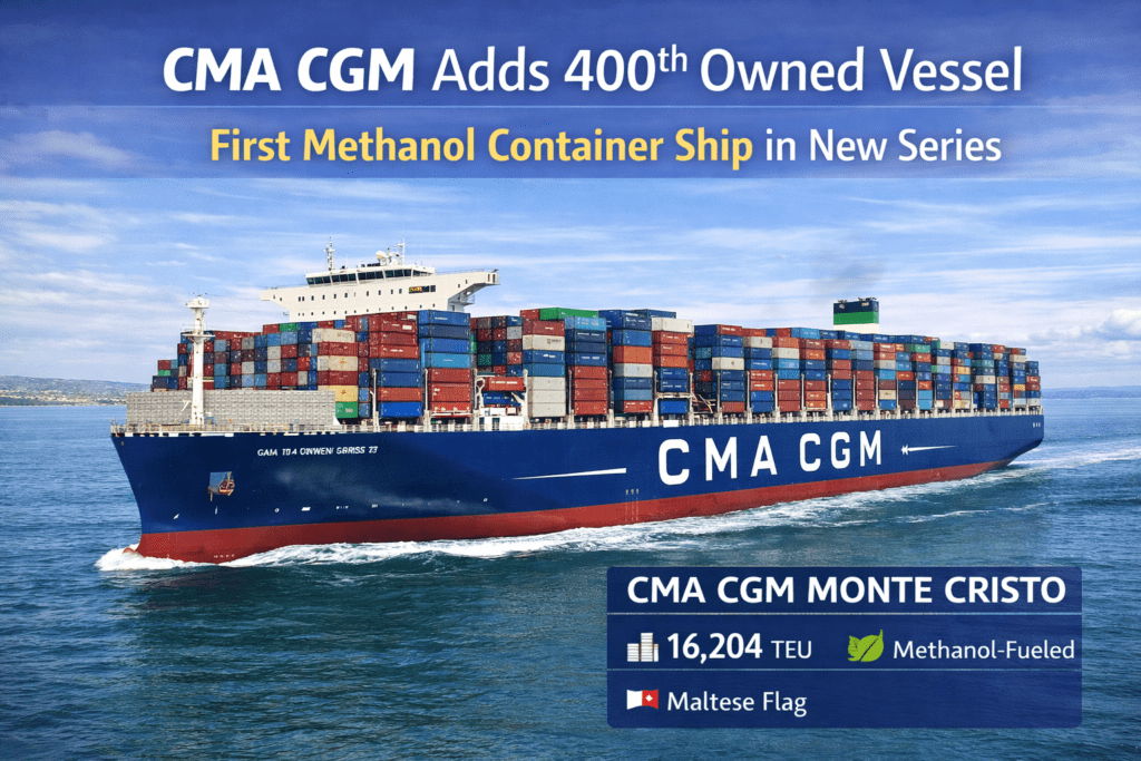 The CMA CGM Group recently received its 400th owned vessel, the CMA CGM Monte Cristo, the first in a series of six methanol container ships.