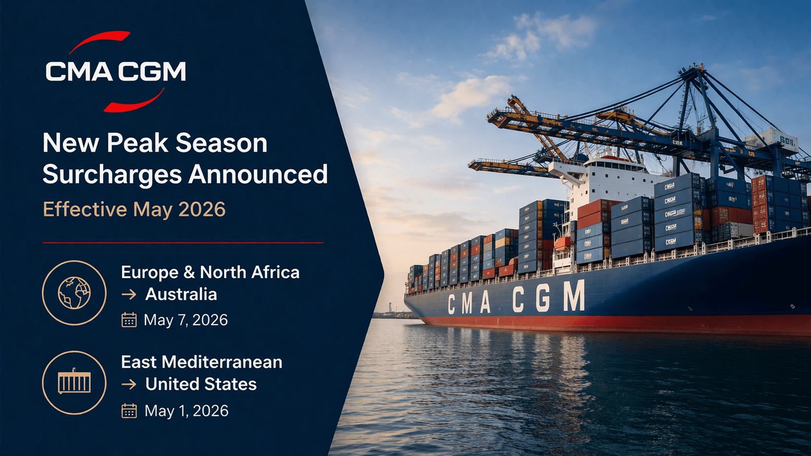 CMA CGM has officially announced new Peak Season Surcharges (PSS) across multiple major trade lanes.