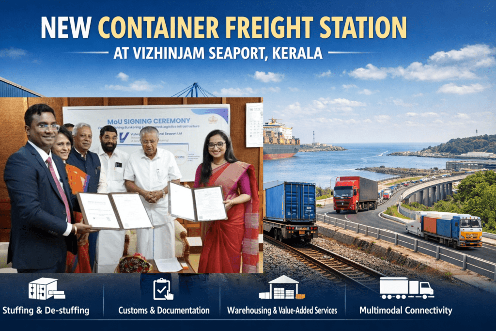 Strategically located near the Vizhinjam seaport, this new CFS is designed to strengthen Kerala’s position as a major gateway for international trade.