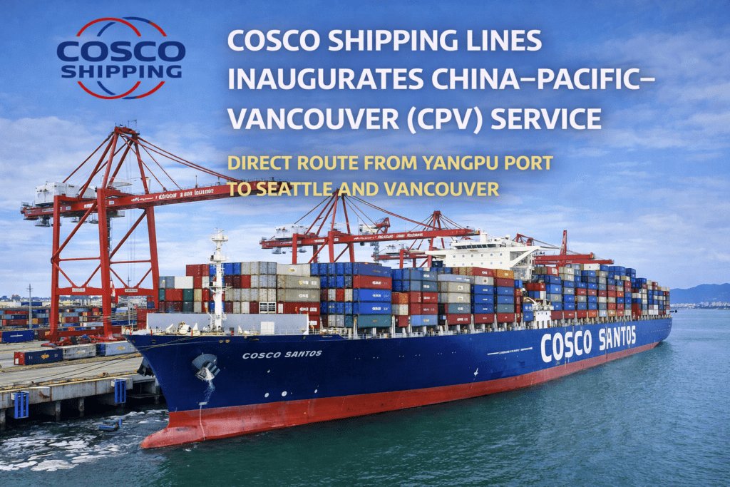 COSCO Shipping Lines has officially inaugurated its CPV (China–Pacific–Vancouver) service, marking a major milestone in trade connectivity between Asia and North America. The service kicked off on January 23 with the departure of the COSCO Santos (261.1 meters) from Yangpu International Container Terminal, carrying a mix of seafood, chemical products, and transshipment cargo destined for Seattle.