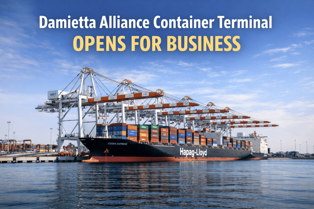 The Damietta Alliance Container Terminal (DACT) has officially commenced commercial operations,The new terminal welcomed its first vessel, Hapag-Lloyd’s Essen Express (13,117 TEU), on Saturday, February 14, 2026.