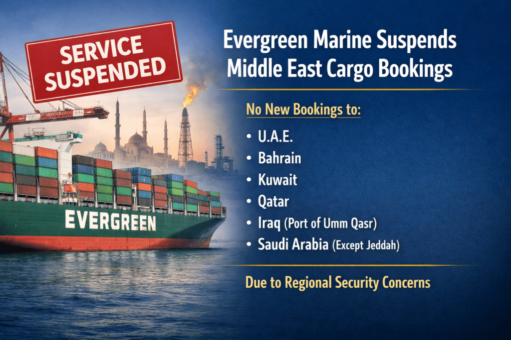 Due to the rapidly evolving security situation in the region, Evergreen Marine Corporation has officially suspended the acceptance of new cargo bookings for several key Middle East ports.