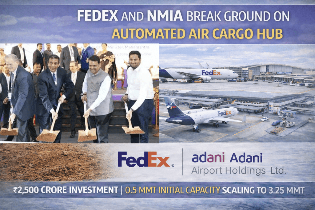 FedEx and Navi Mumbai International Airport (NMIA) have trail blazed on a fully automated air cargo hub. Backed by a ₹2,500 crore long-term investment, the facility is being developed in partnership with Adani Airport Holdings Ltd. (AAHL) to serve as a major consolidation and redistribution gateway for Western India.