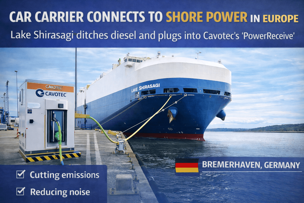 Cavotec has supported a major milestone in European port electrification. For the first time ever, a car carrier at a European port has successfully connected to shore power.