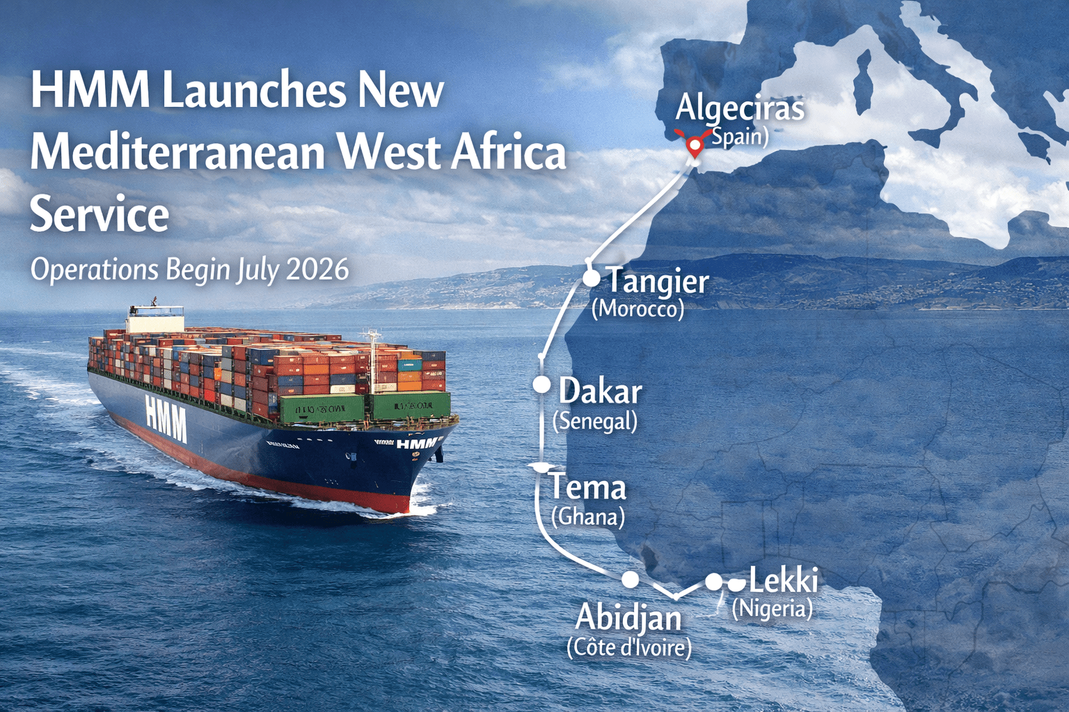 HMM has officially announced the launch of its new Mediterranean West Africa Service (MA2), set to begin operations in July 2026. This new route is a core piece of HMM’s hub and spoke strategy, designed to link primary East West trade lanes directly with emerging African markets.