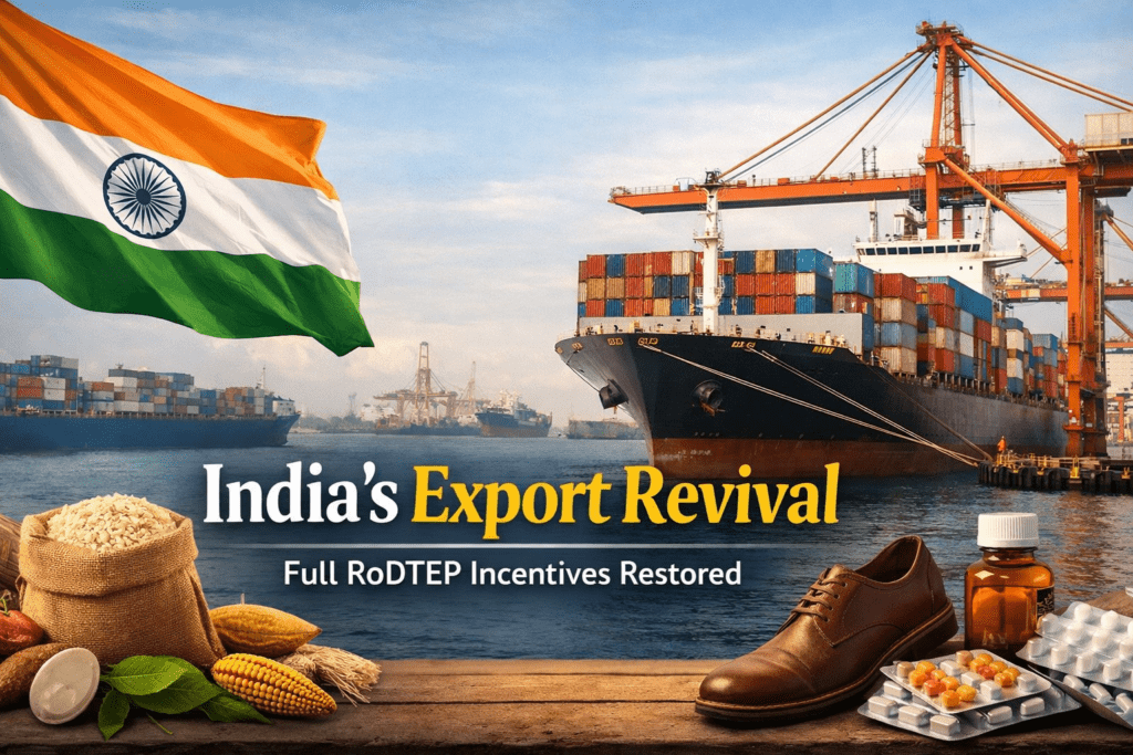 This move directly reverses a recent government decision that had halved RoDTEP incentive rates across all eligible tariff lines. Originally notified in 2021, the RoDTEP scheme compensates exporters for embedded local, state, and central duties and taxes that are not refundable under other mechanisms. By restoring the full incentive rates, the government aims to keep Indian goods competitive on price in international markets.