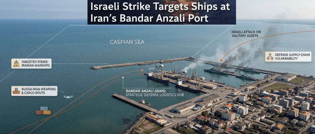 The Israeli Defense Forces have launched an attack on vessels at Bandar Anzali, a strategic port on Iran’s Caspian Sea coast.