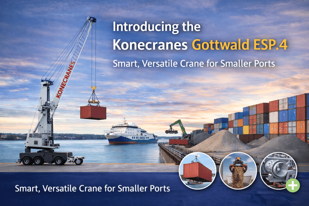 Konecranes has expanded its Generation 6 lineup with the introduction of the Konecranes Gottwald ESP.4. As the newest and smallest addition to the mobile harbor crane family, the ESP.4 is specifically engineered for smaller seaside and river ports that require versatile cargo handling without a massive footprint.