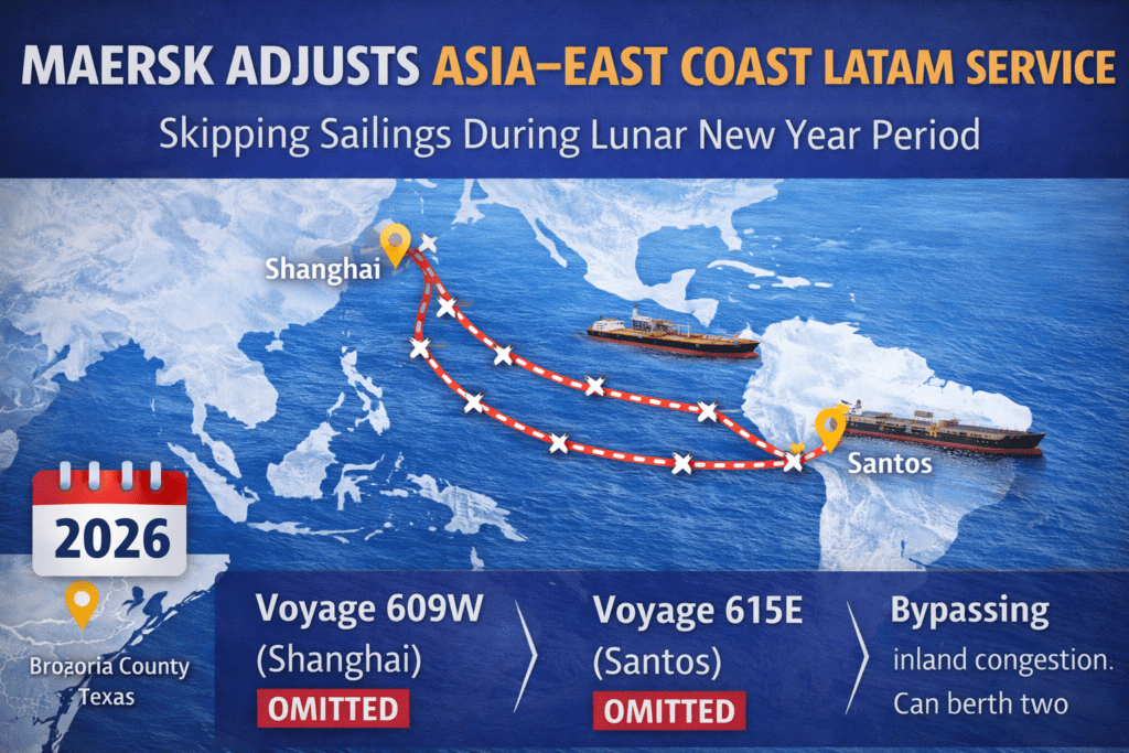 Maersk said the adjustment is intended to align capacity with seasonal demand patterns while minimizing disruption across the Asia–East Coast Latin America trade lane.
