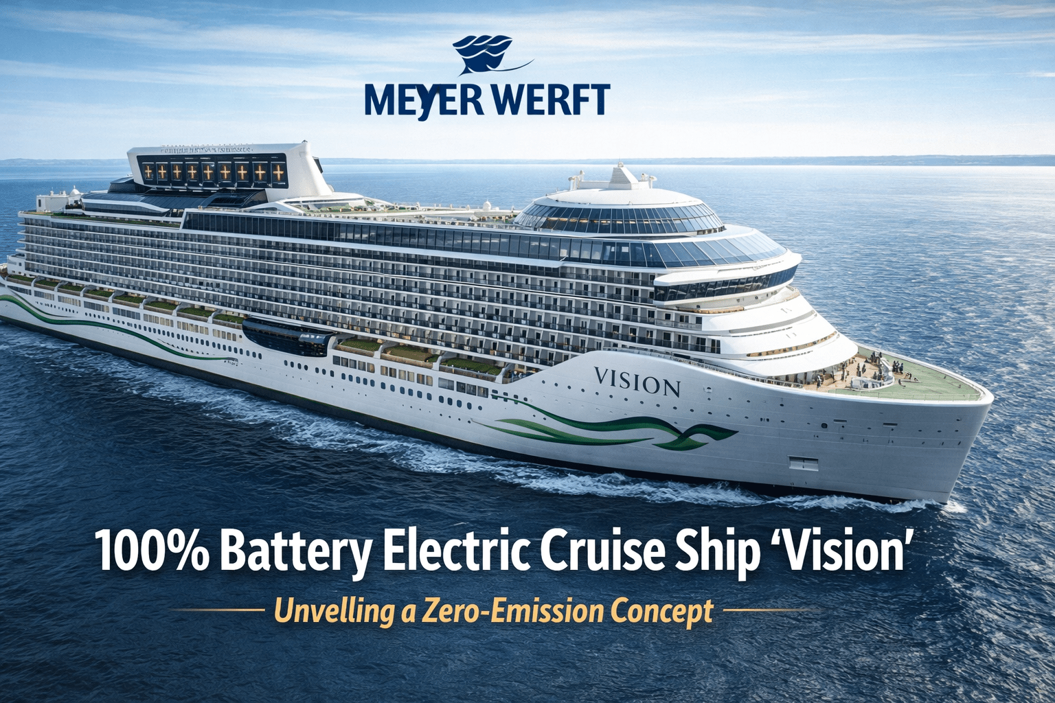 German shipbuilder MEYER WERFT has introduced “Vision,” a concept design for what it claims will be the world’s first 100% battery electric cruise ship.