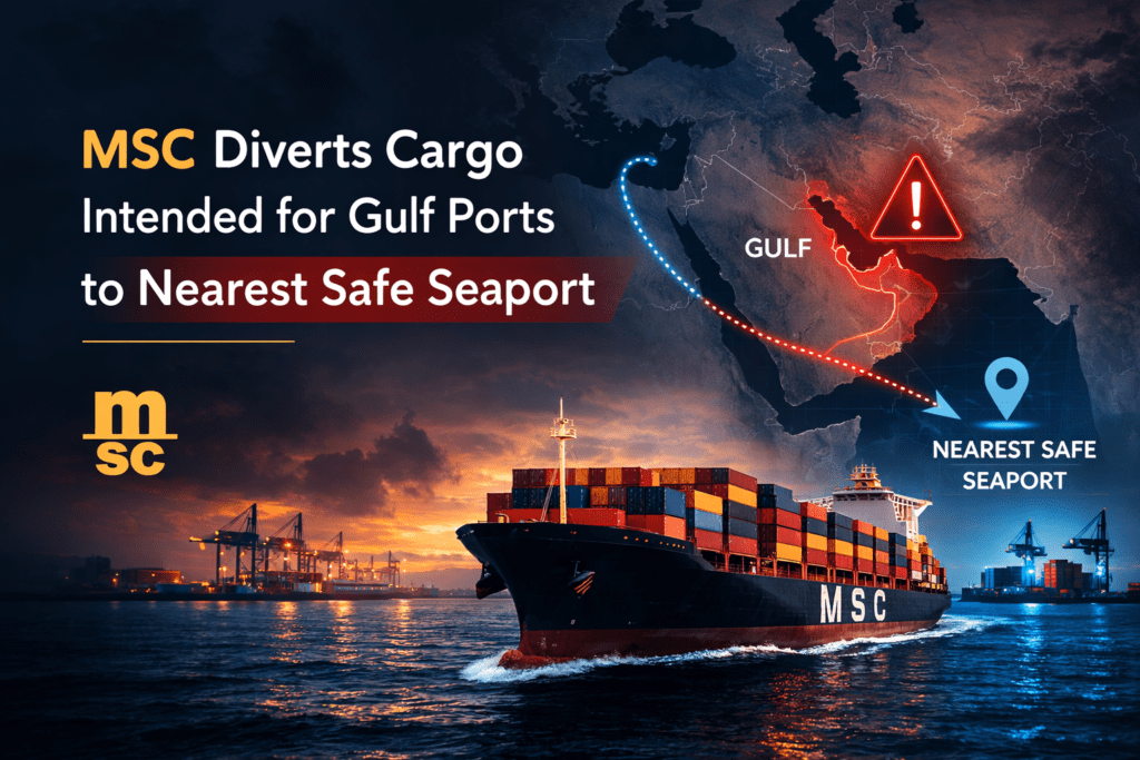 Mediterranean Shipping Company (MSC) has announced that all cargo bound for ports in the Gulf will be immediately offloaded at the nearest safe seaport.