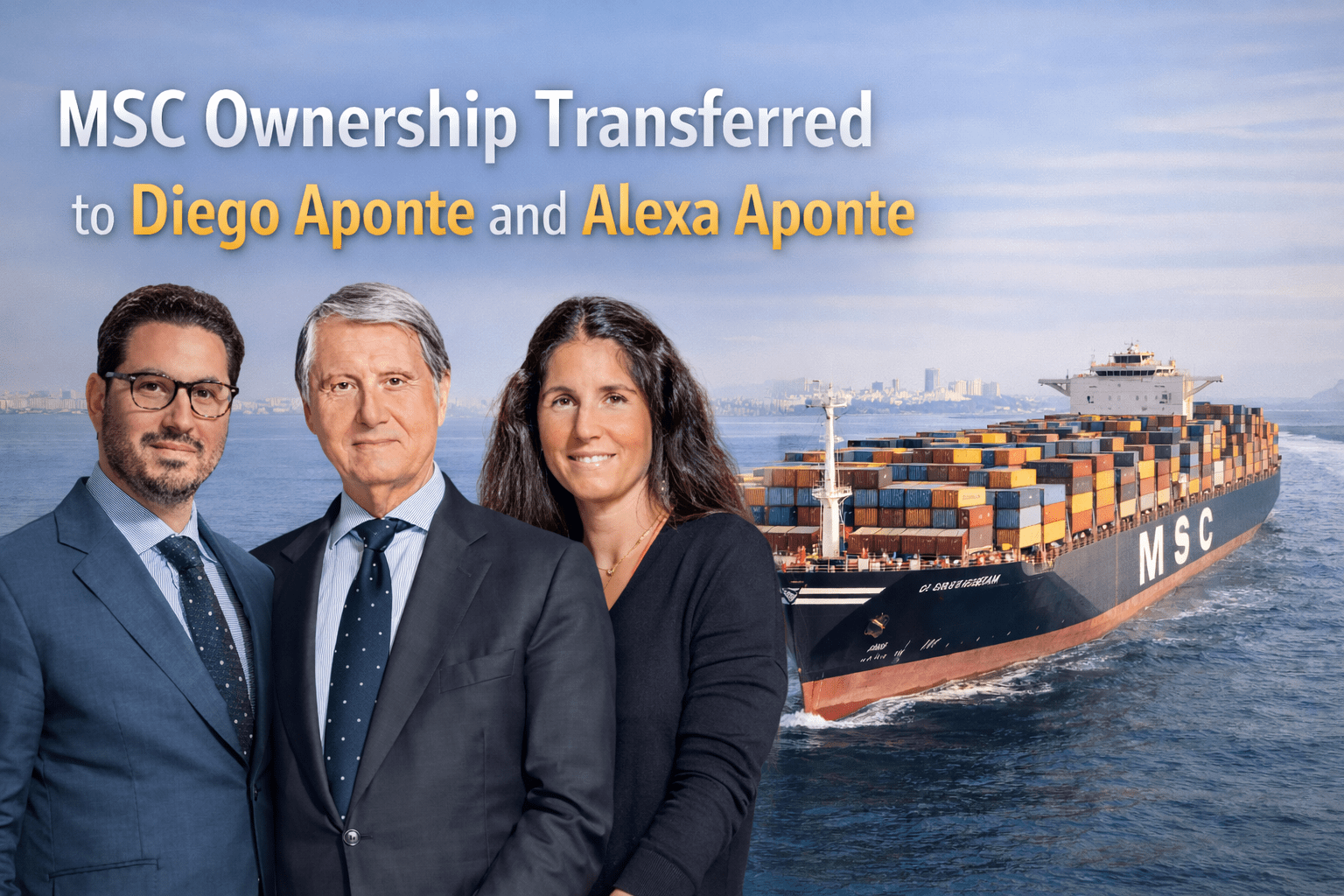 Mediterranean Shipping Company (MSC) has officially announced the transfer of ownership from its founder, Captain Gianluigi Aponte, to his children, Diego Aponte and Alexa Aponte.