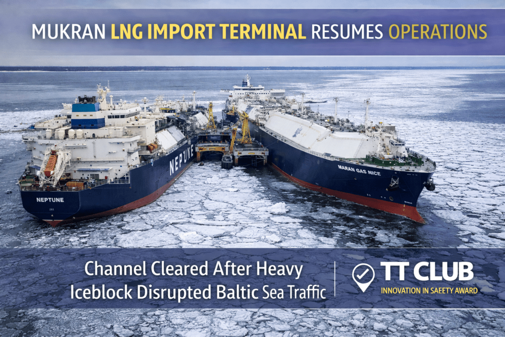 Operations at Germany’s largest floating LNG import terminal at Mukran have restarted following a successful icebreaking campaign. Heavy sea ice in the Baltic Sea had blocked the approach channel for weeks, disrupting logistics and gas flows.