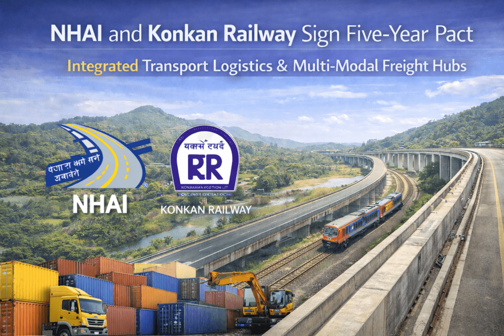 NHAI and Konkan Railway sign a five-year pact to build integrated transport logistics and multi-modal freight hubs.