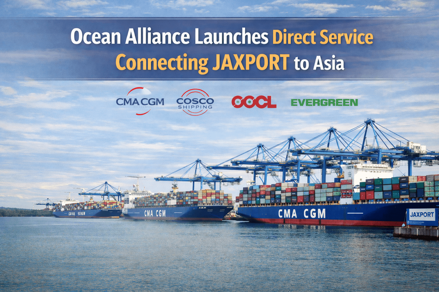 The Ocean Alliance is expanding its US Southeast footprint with a new direct container service connecting the Jacksonville Port Authority (JAXPORT) to major Asian markets.