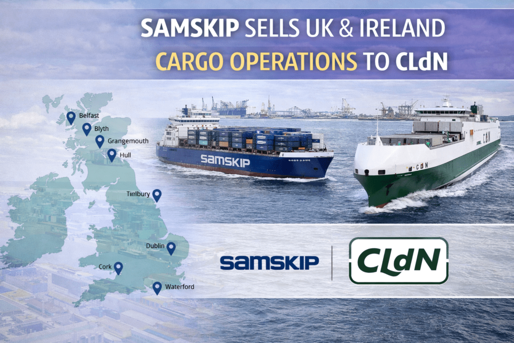 Samskip has announced a strategic agreement to sell its UK and Ireland (UKI-trade) door-to-door and quay to quay cargo business to the short sea shipping and multimodal operator CLdN.