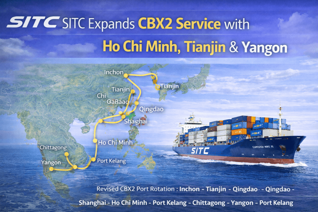 SITC has expanded the port rotation of its CBX2 service with the addition of Ho Chi Minh (northbound), Tianjin and Yangon.