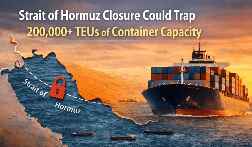 A potential closure of the Strait of Hormuz could trap more than 200,000 TEUs of deep sea container capacity inside the Persian Gulf. According to a new Sunday Spotlight report from Sea Intelligence, a network stress test reveals how shutting down this strategic waterway would severely disrupt global ocean freight.