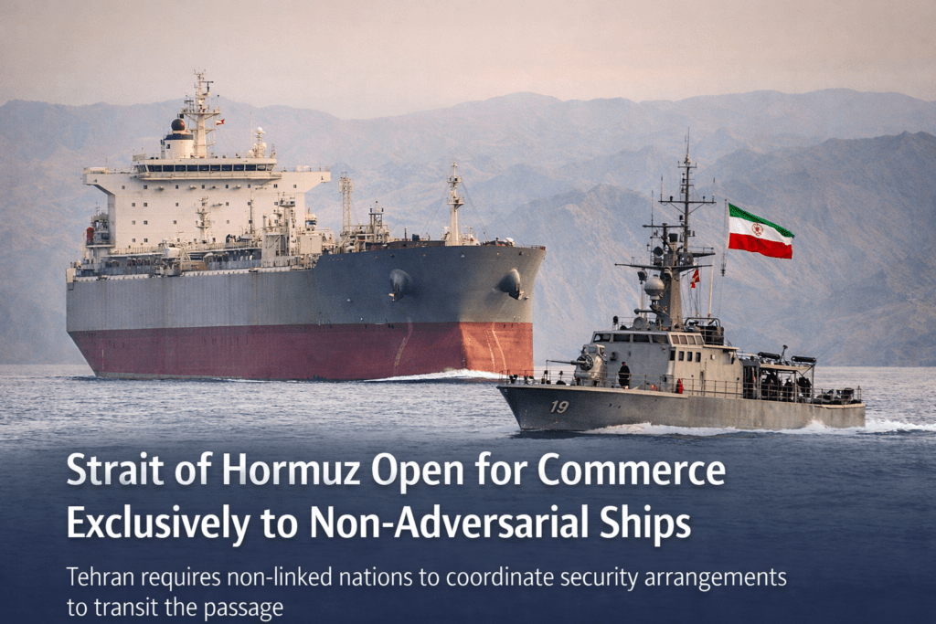The Strait of Hormuz remains open to commercial shipping, but strictly for vessels that are not linked to “Iran’s enemies.” Ali Mousavi, Iran’s representative to the International Maritime Organization (IMO) and ambassador to the UK, outlined this restriction in a recent interview with Xinhua.