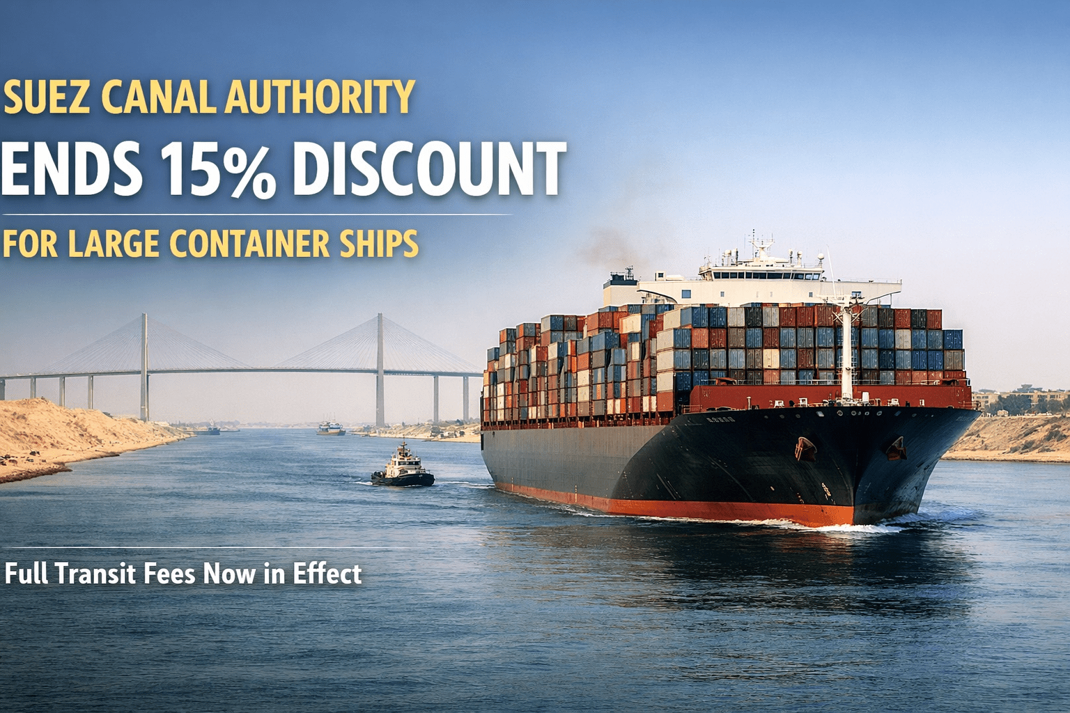The Suez Canal Authority (SCA) has officially suspended the 15% discount on transit fees previously granted to large container vessels. The policy reversal took effect on Tuesday, confirmed by a circular published on the SCA website on April 2, 2026.